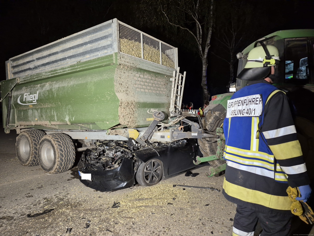 Verkehrsunfall PKW gegen Traktor - zwei Personen eingeklemmt - Fahrzeug raucht. So die Einsatzmeldung für die Aßlinger Wehr am frühen Freitag Abend in Martermühle. Vor Ort stellte sich heraus, dass zum Glück niemand eingeklemmt war. Die Betroffenen konnten sich selbst aus dem Unfallwrack befreien und wurden durch die First Responder sowie Feuerwehrsanitäter medizinisch bis zum Eintreffen des Rettungsdienstes erstversorgt. Der Brandschutz wurde sichergestellt und ein Landeplatz für den Rettungshubschrauber Christoph München ausgeleuchtet. Die Bergung des Unfallfahrzeugs gestaltete sich schwierig. Für die Dauer der Rettungs- und Aufräumarbeiten war die Staatsstraße Richtung Emmering knapp 3 Stunden voll gesperrt. Unterstützt wurden wir von der Feuerwehr Loitersdorf. Weiter im Einsatz vier Rettungswägen, zwei Notärzte, ein Rettungshubschrauber, der Einsatzleiter Rettungsdienst sowie die Kreisbrandinspektion Ebersberg und die Polizeiinspektion Ebersberg mit drei Streifenwägen.