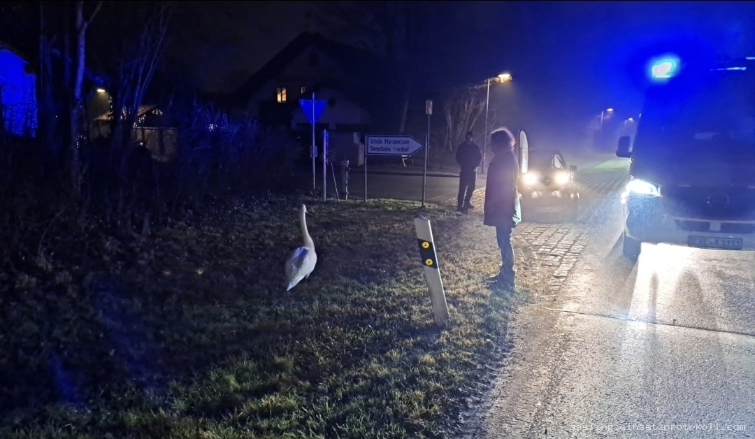 Die Kommandanten wurden via Dienststellenalarm über einen potentiell verletzten Schwan an der Rosenheimer Straße alarmiert. Vor Ort hatten Passanten auch bereits den hiesigen Tierarzt verständigt, welcher den Schwan einfing und in Augenschein nahm. Die Feuerwehr chauffierte die beiden an die Attel, wo das unverletzte Tier in die Freiheit entlassen wurde.